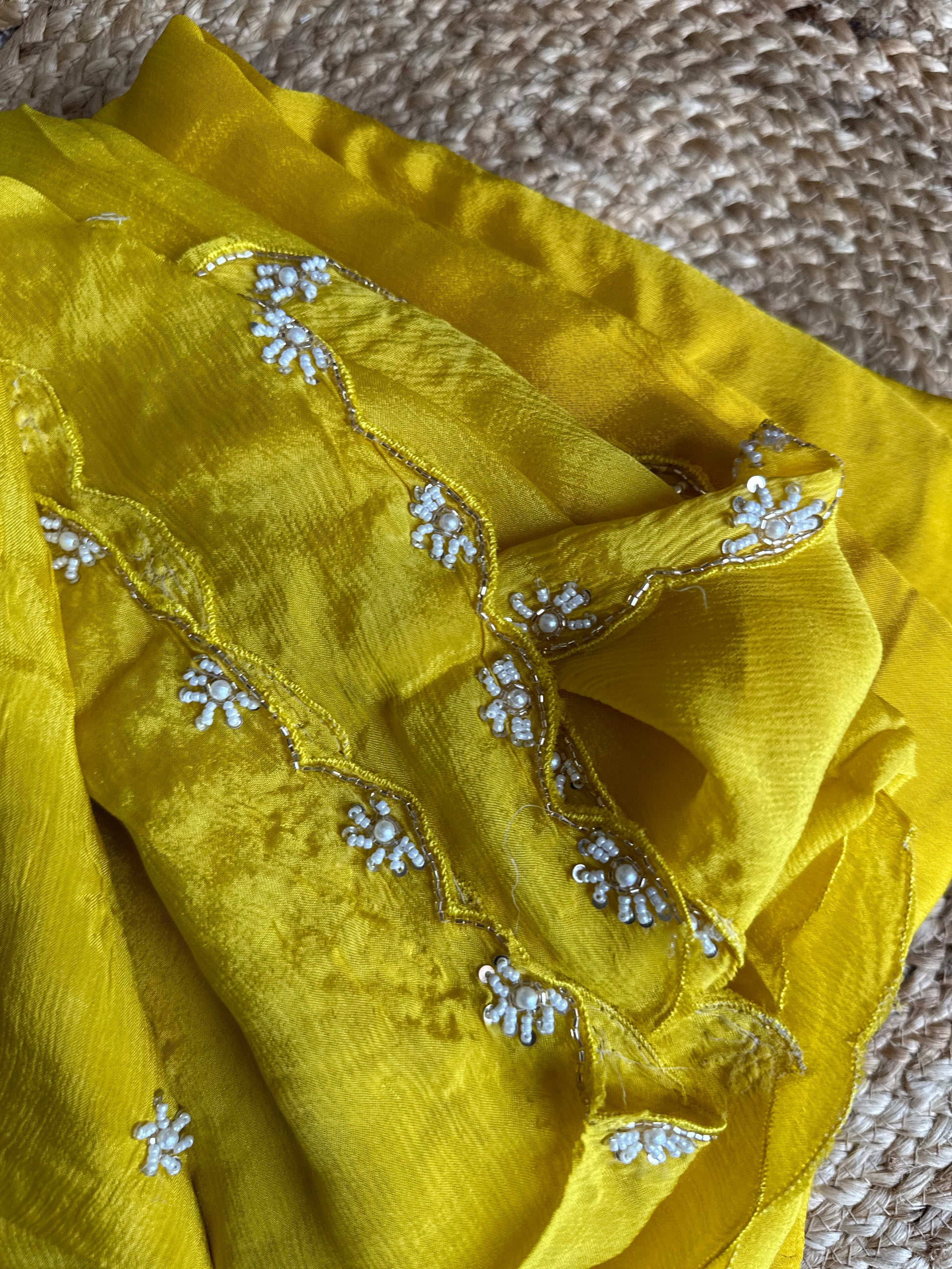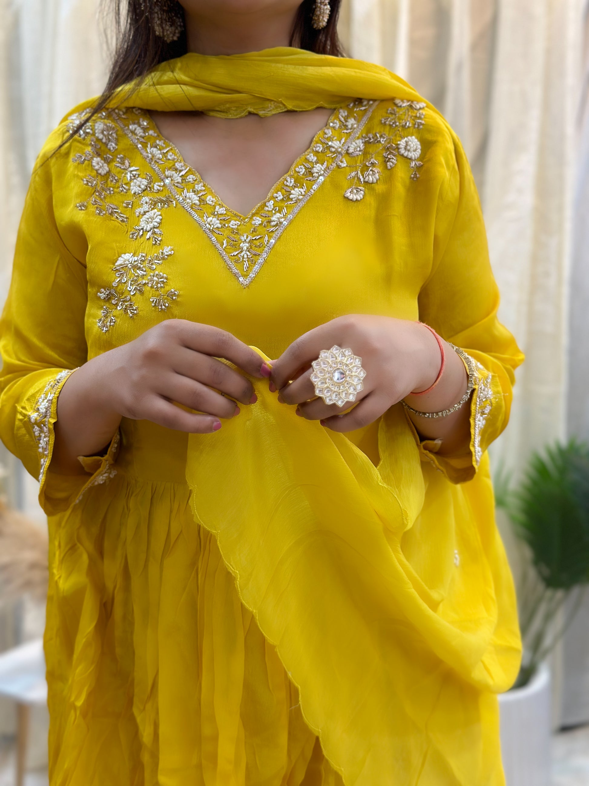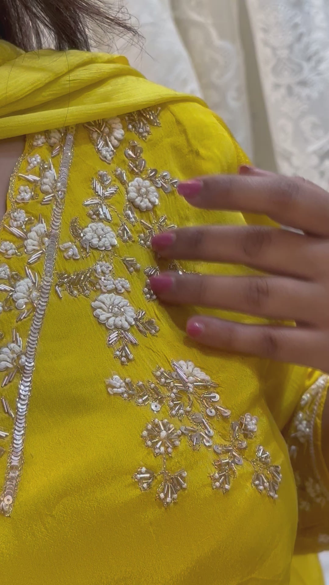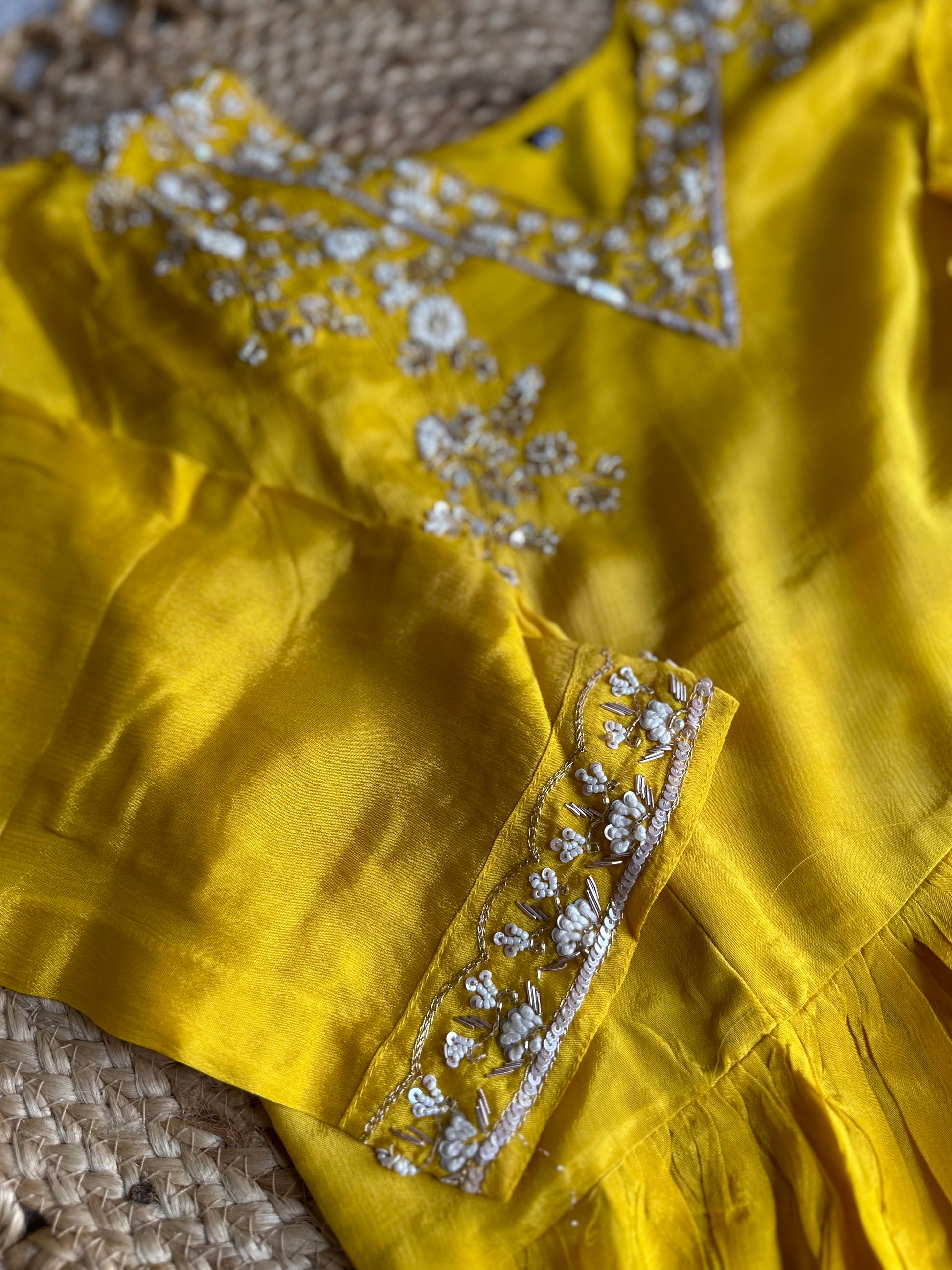 [haldi outfit , festive wear, yellow embroidered , designer wear ]