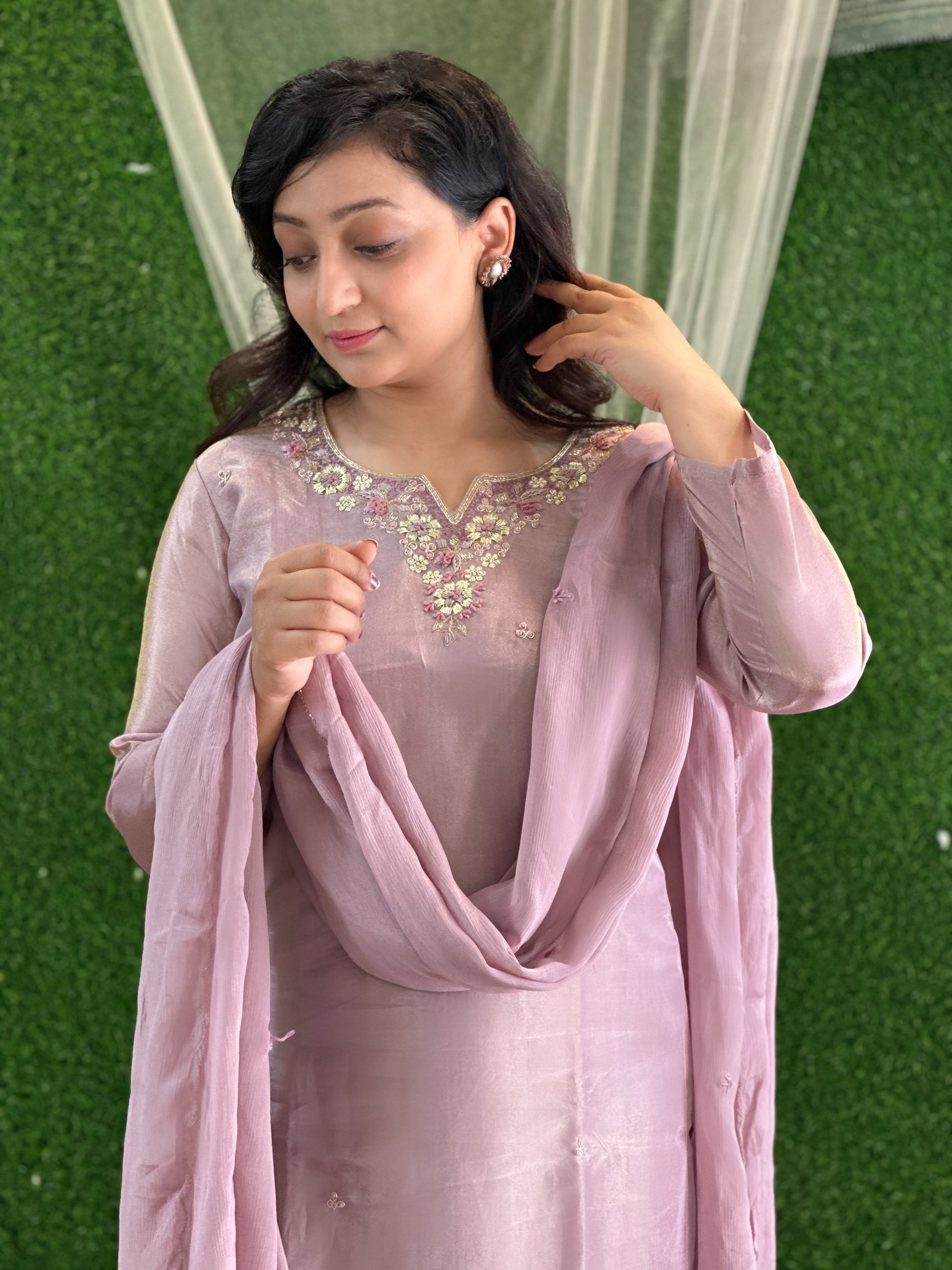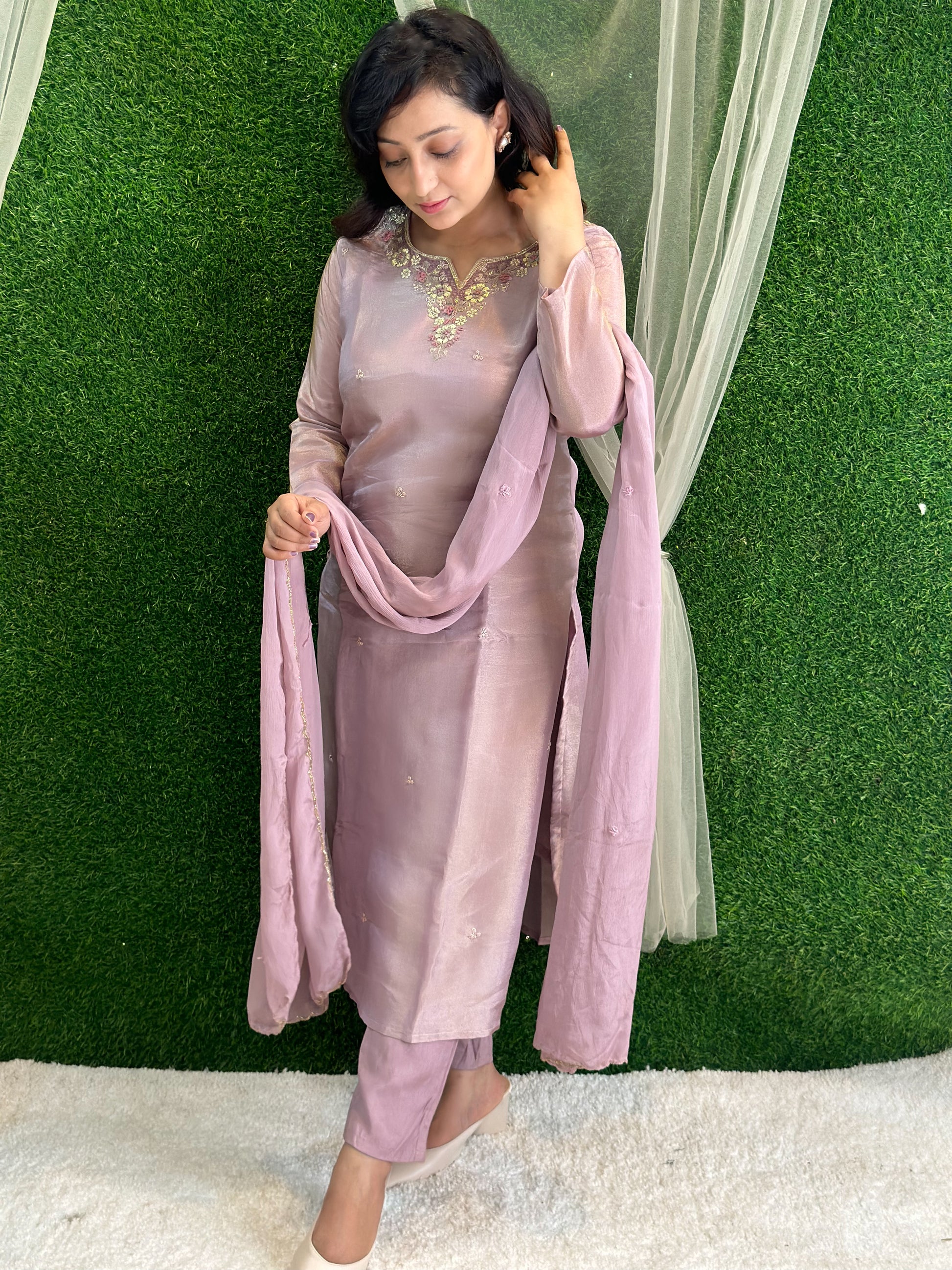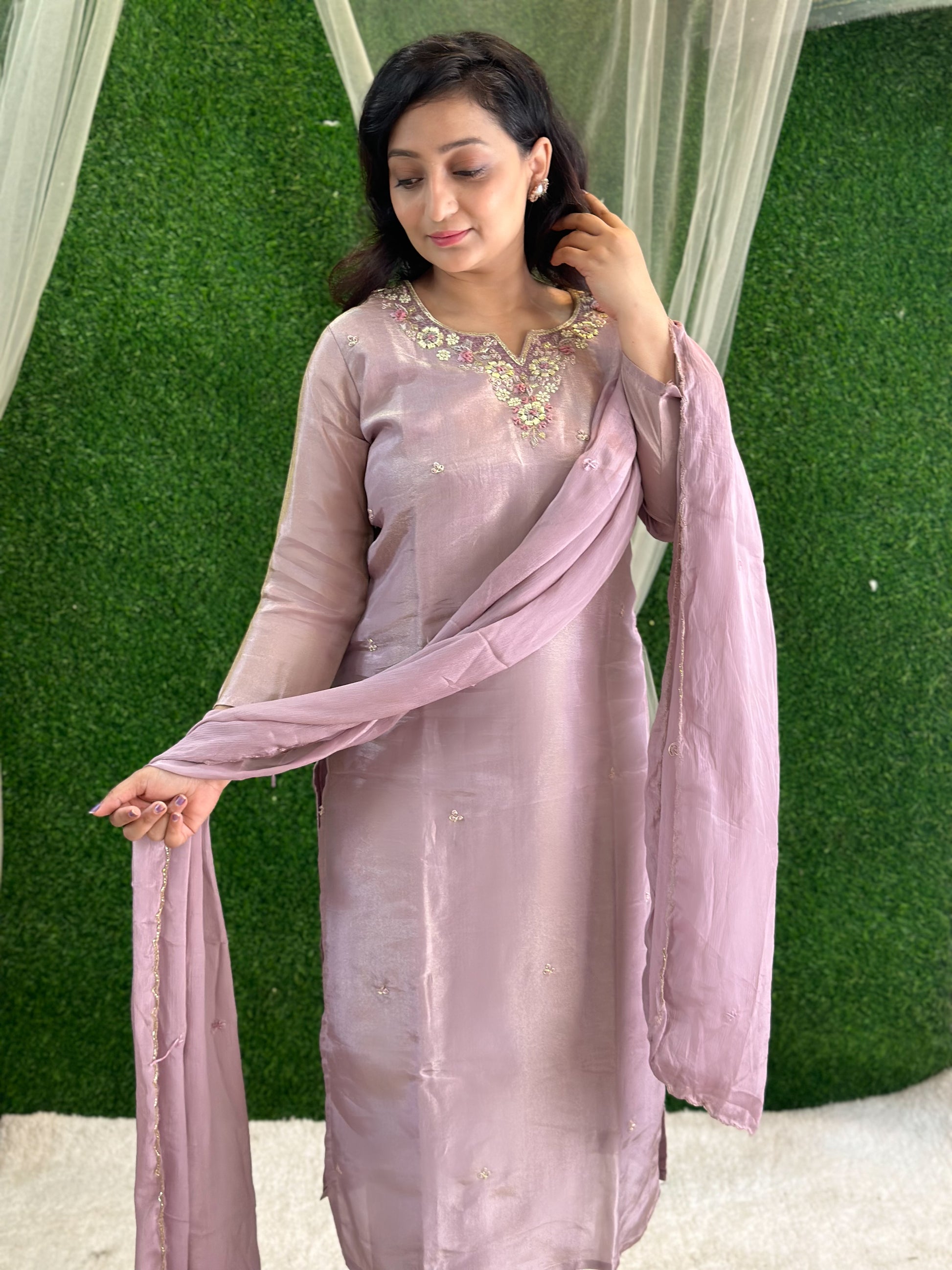 Embrace elegance with this exquisite embroidered tissue silk kurta set, a perfect ensemble for every occasion. Complete with a stunning dupatta and pants, this outfit is sure to make heads turn. 💫✨ #EthnicElegance #FashionGoals