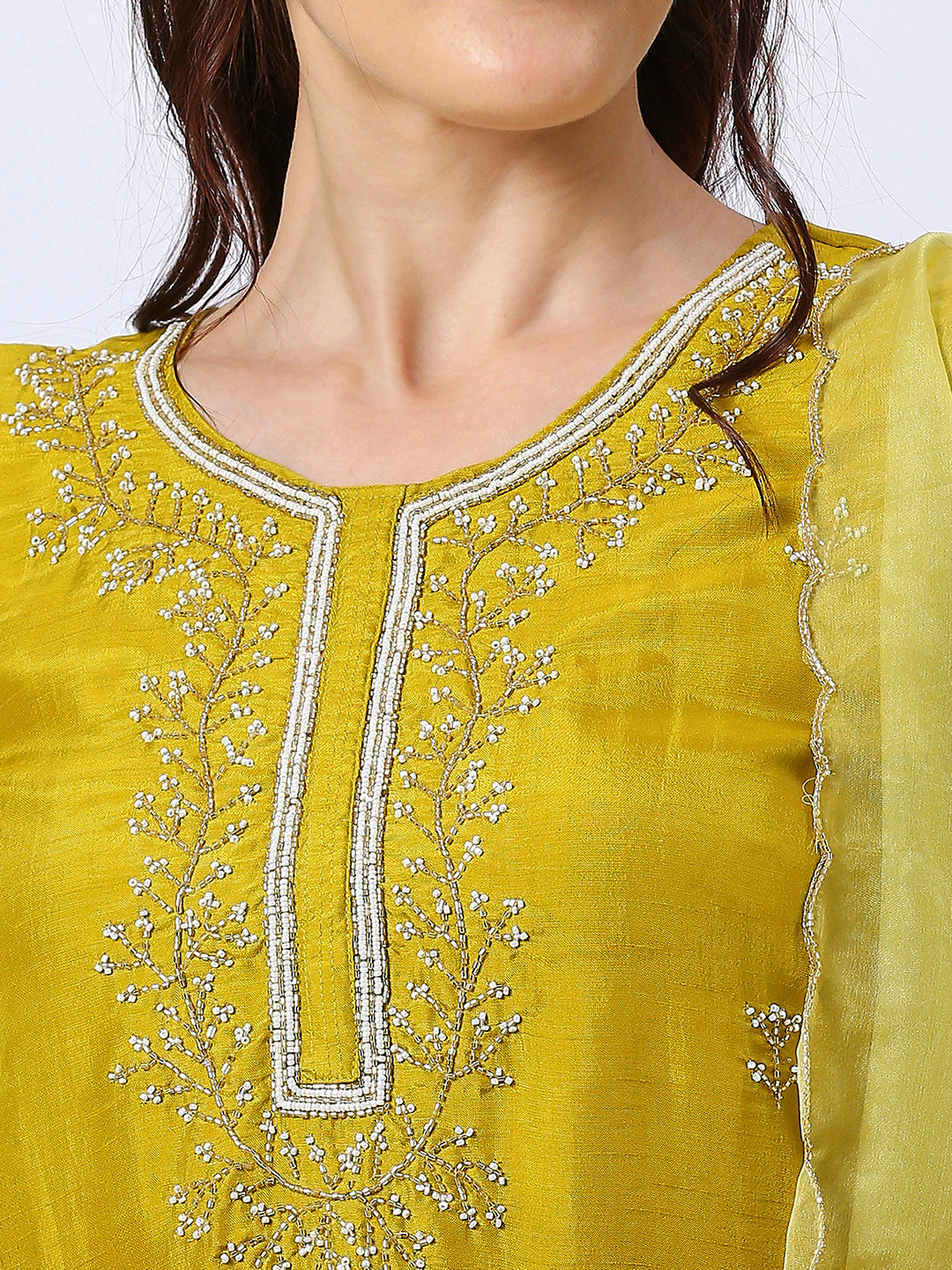 White Hand Embroidered Silk Set