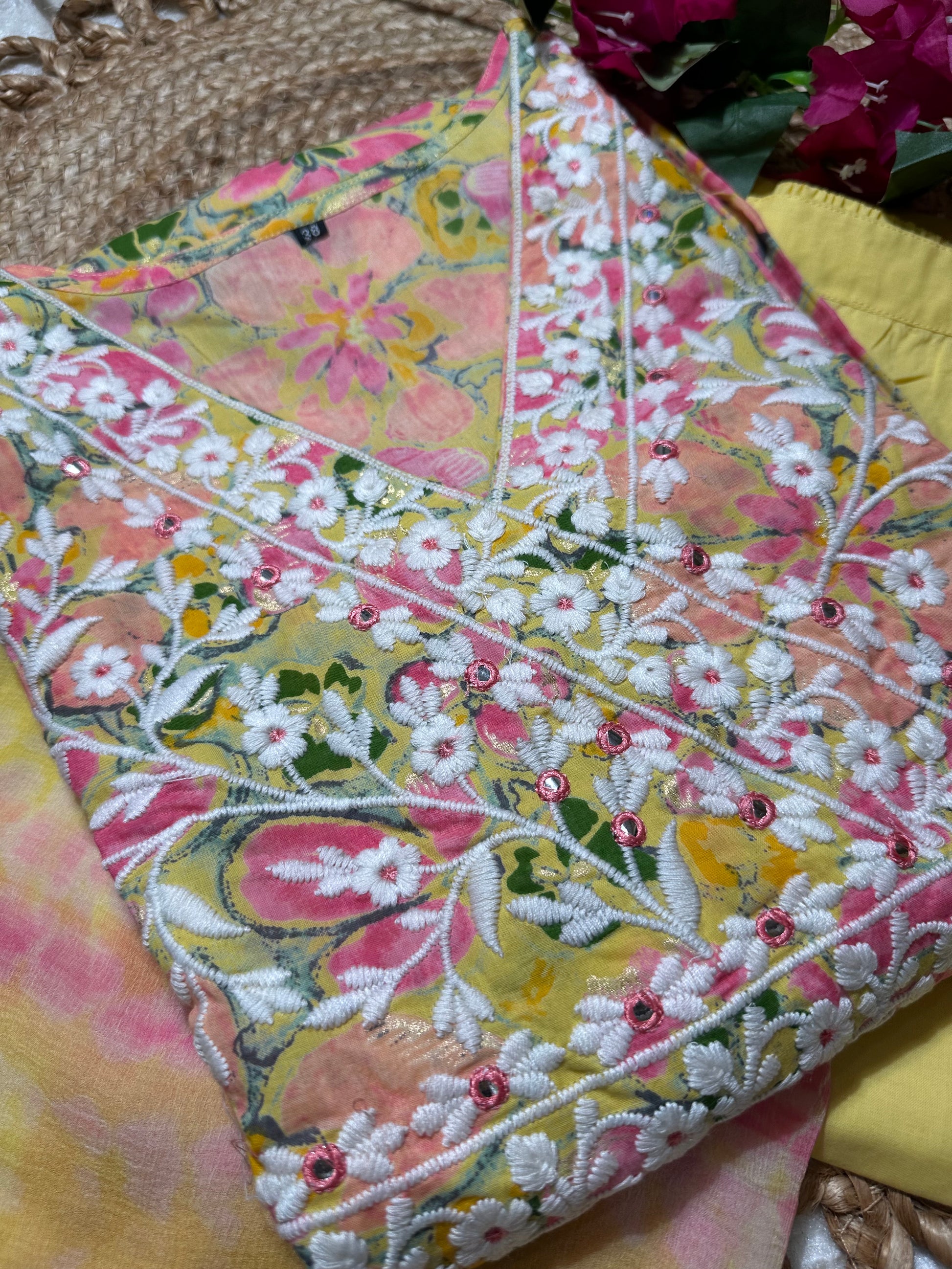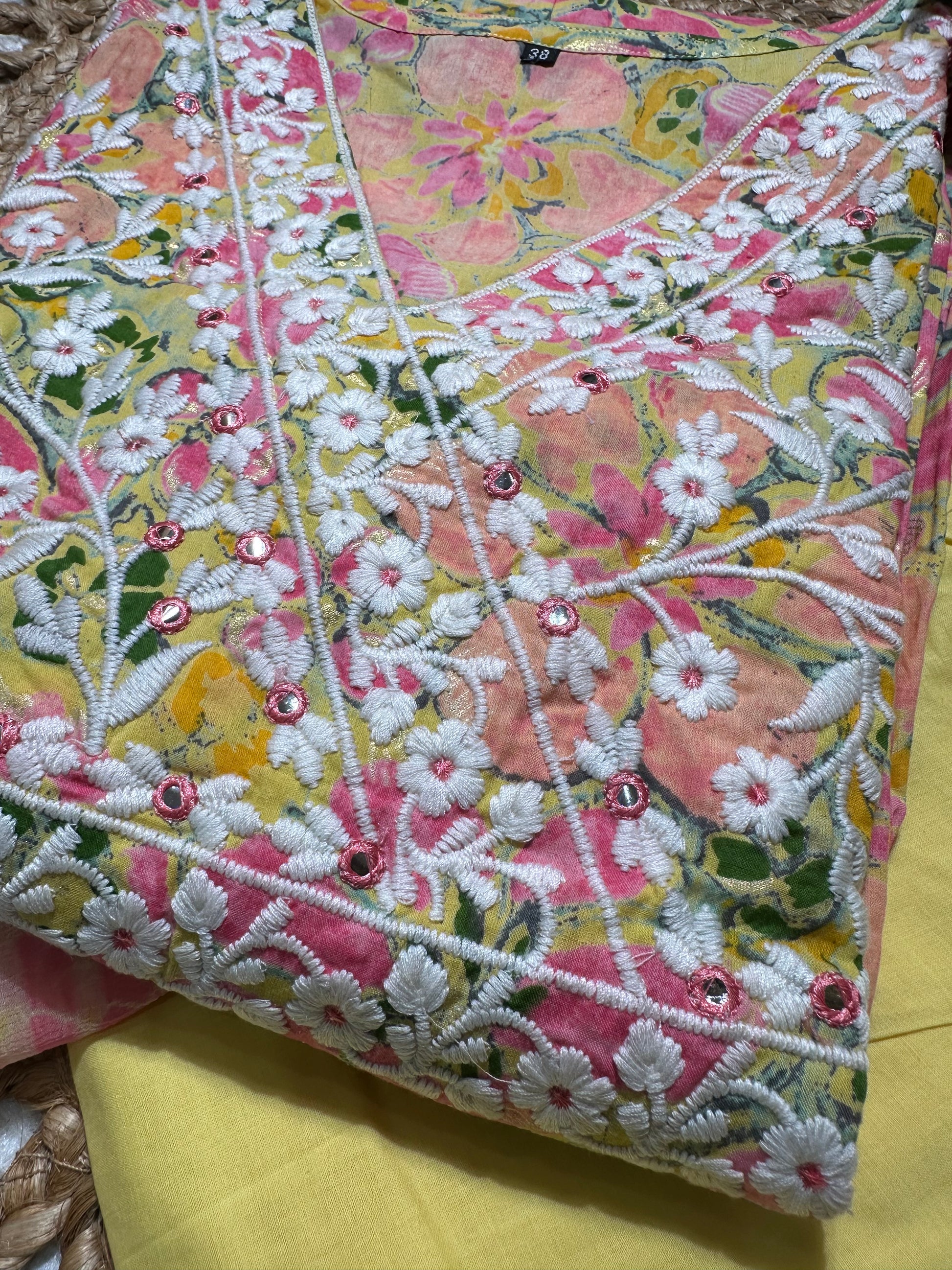 Pure Cotton Alia cut Anarkali kurta with chikenkari work comes with pants and dupatta