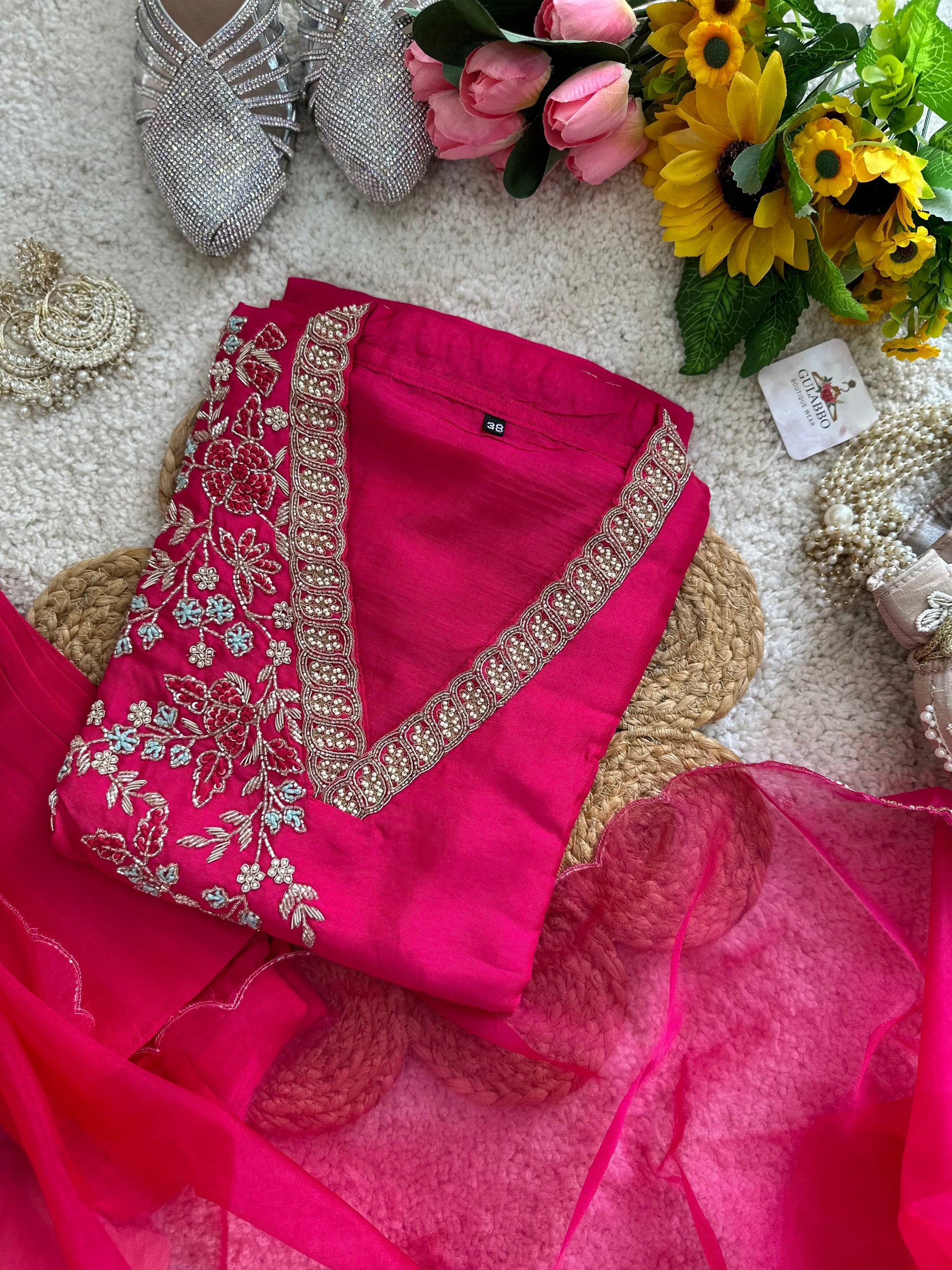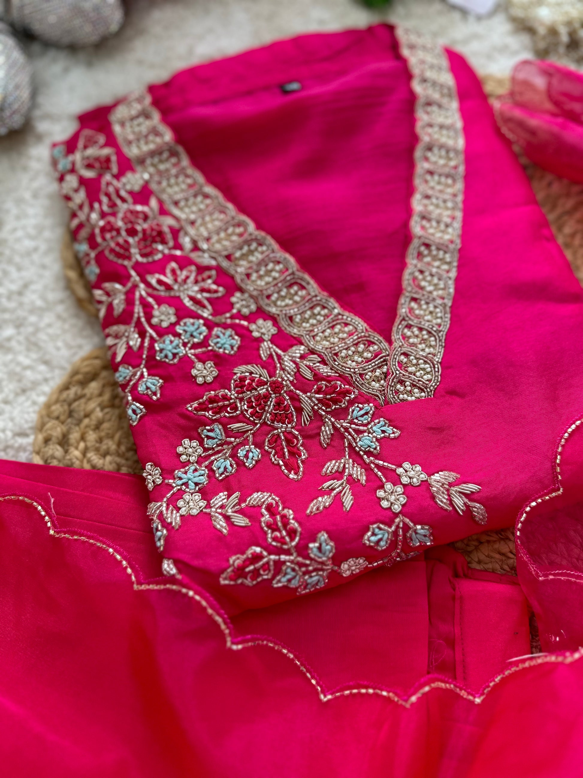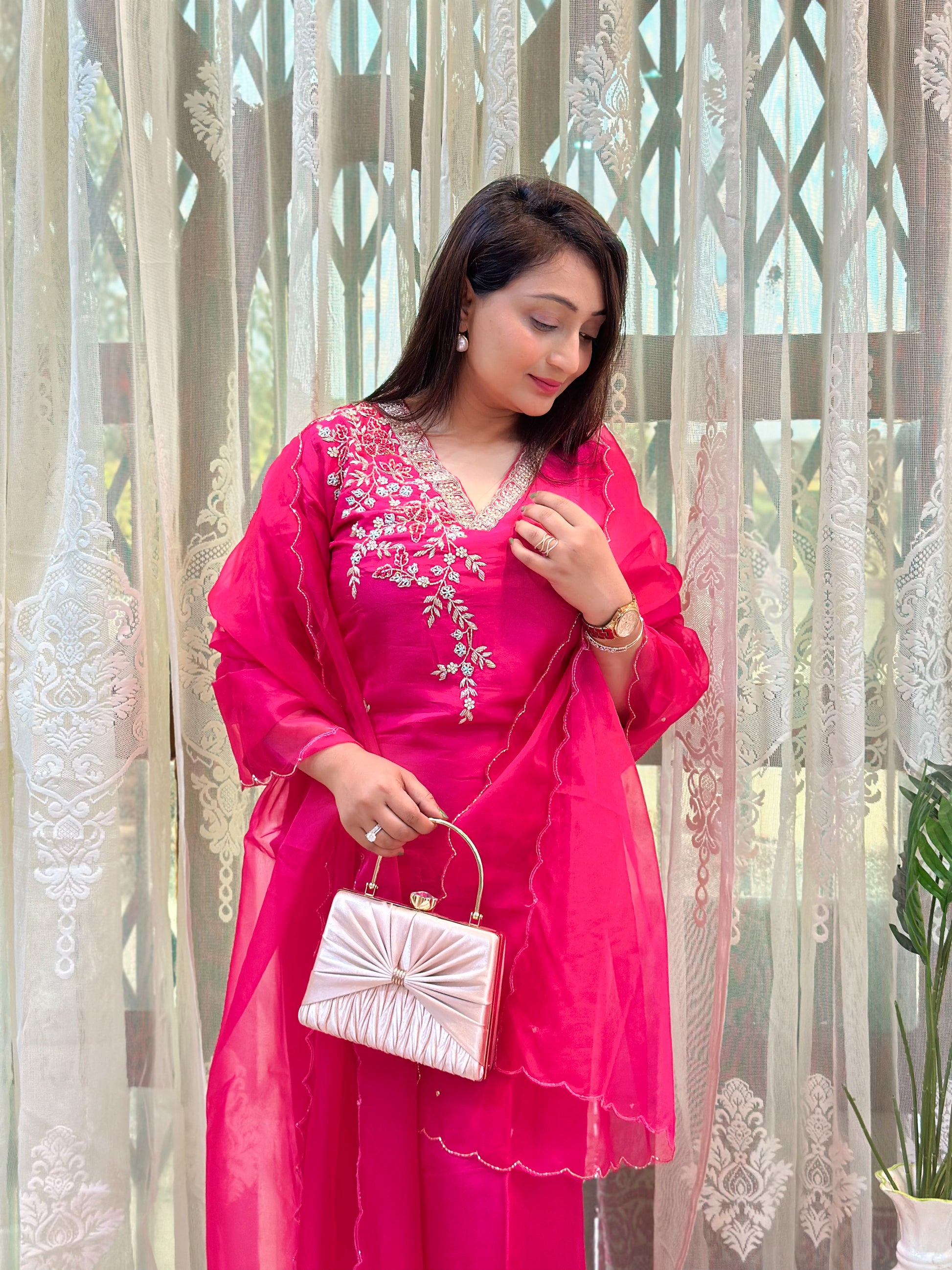 Elevate your ethnic wardrobe with this stunning pink kurta set, featuring intricate heavy embroidery on one side. Crafted from high-quality fabric, this set combines elegance and comfort, making it perfect for festive occasions and special events.