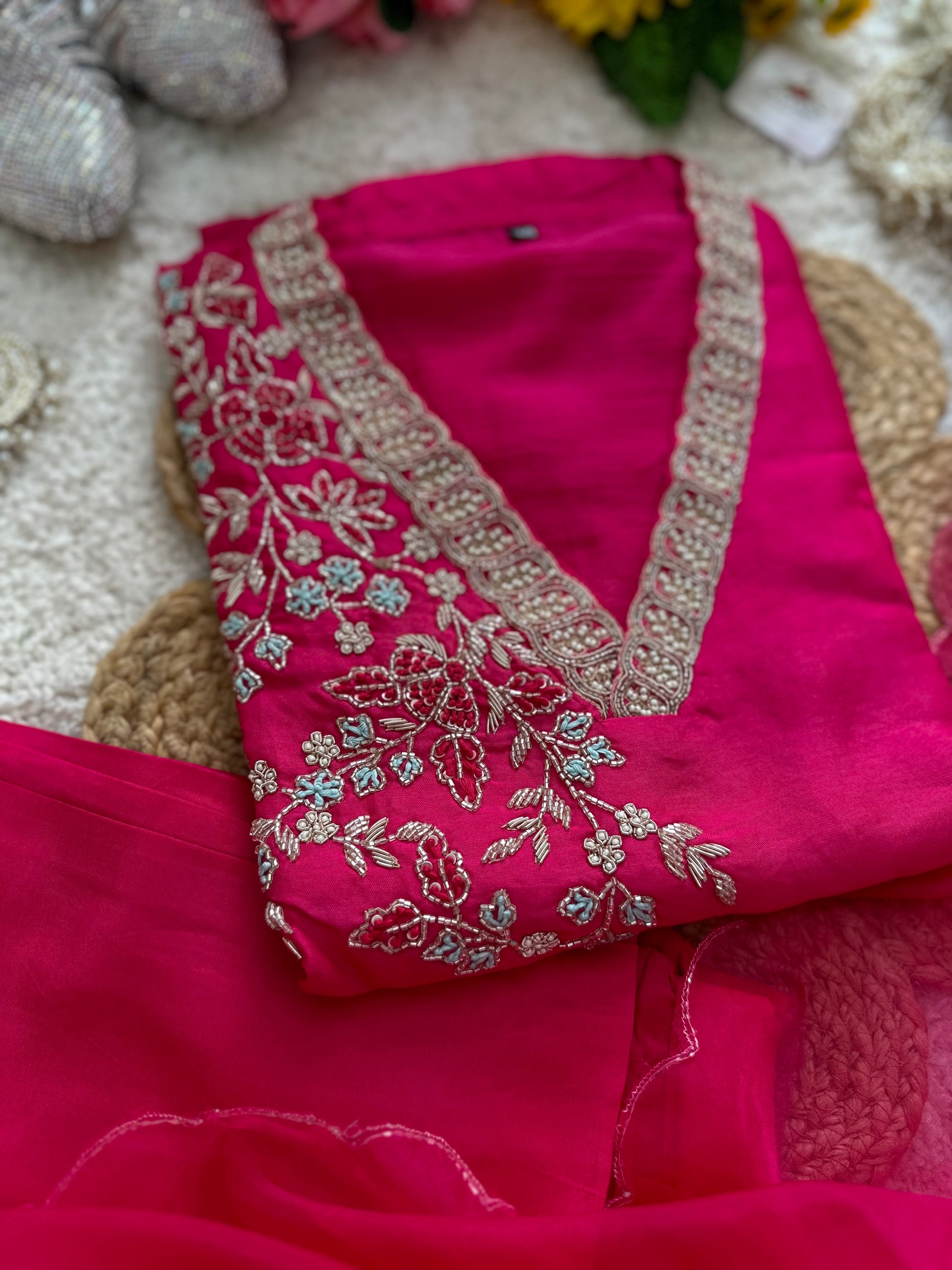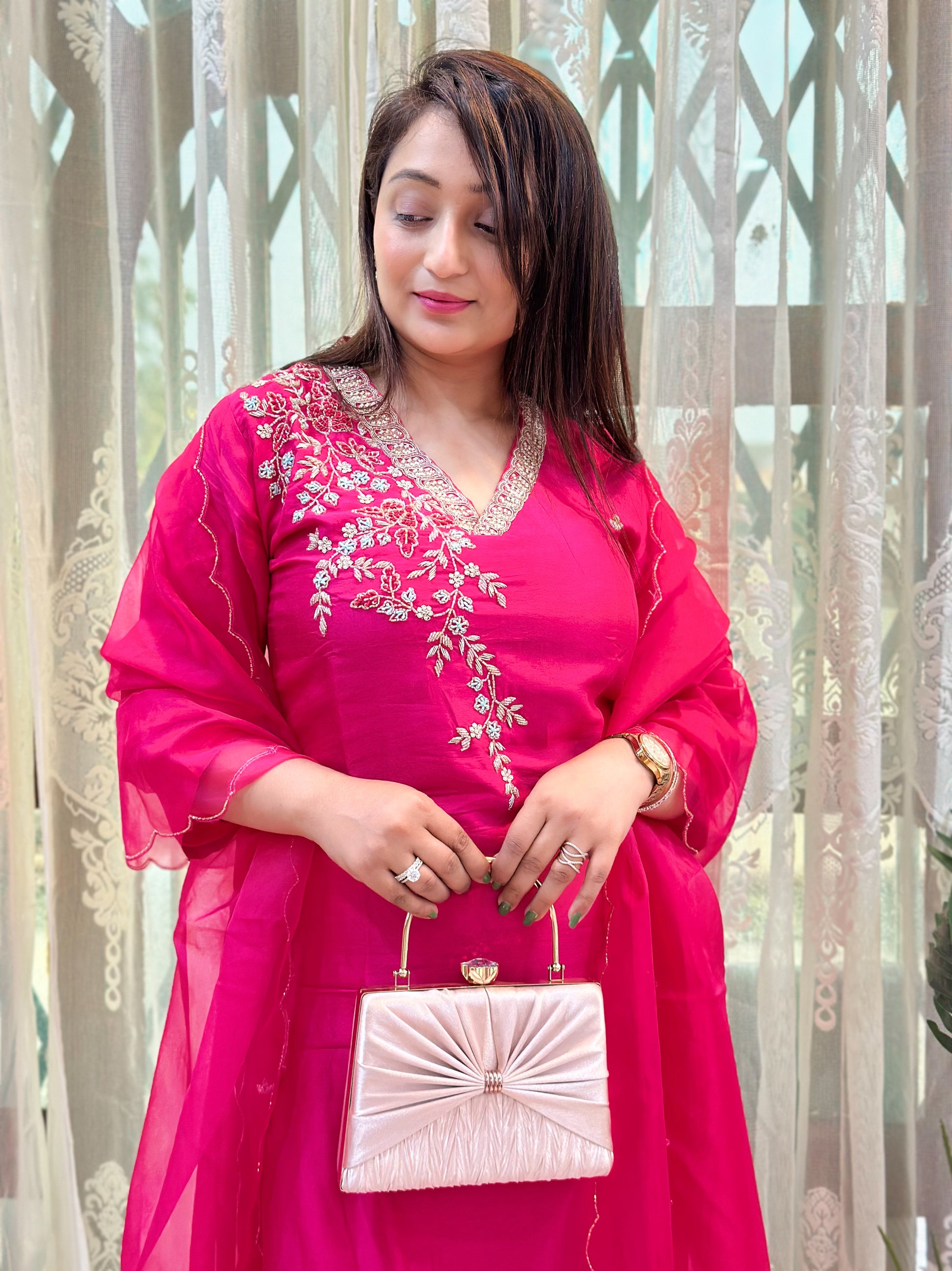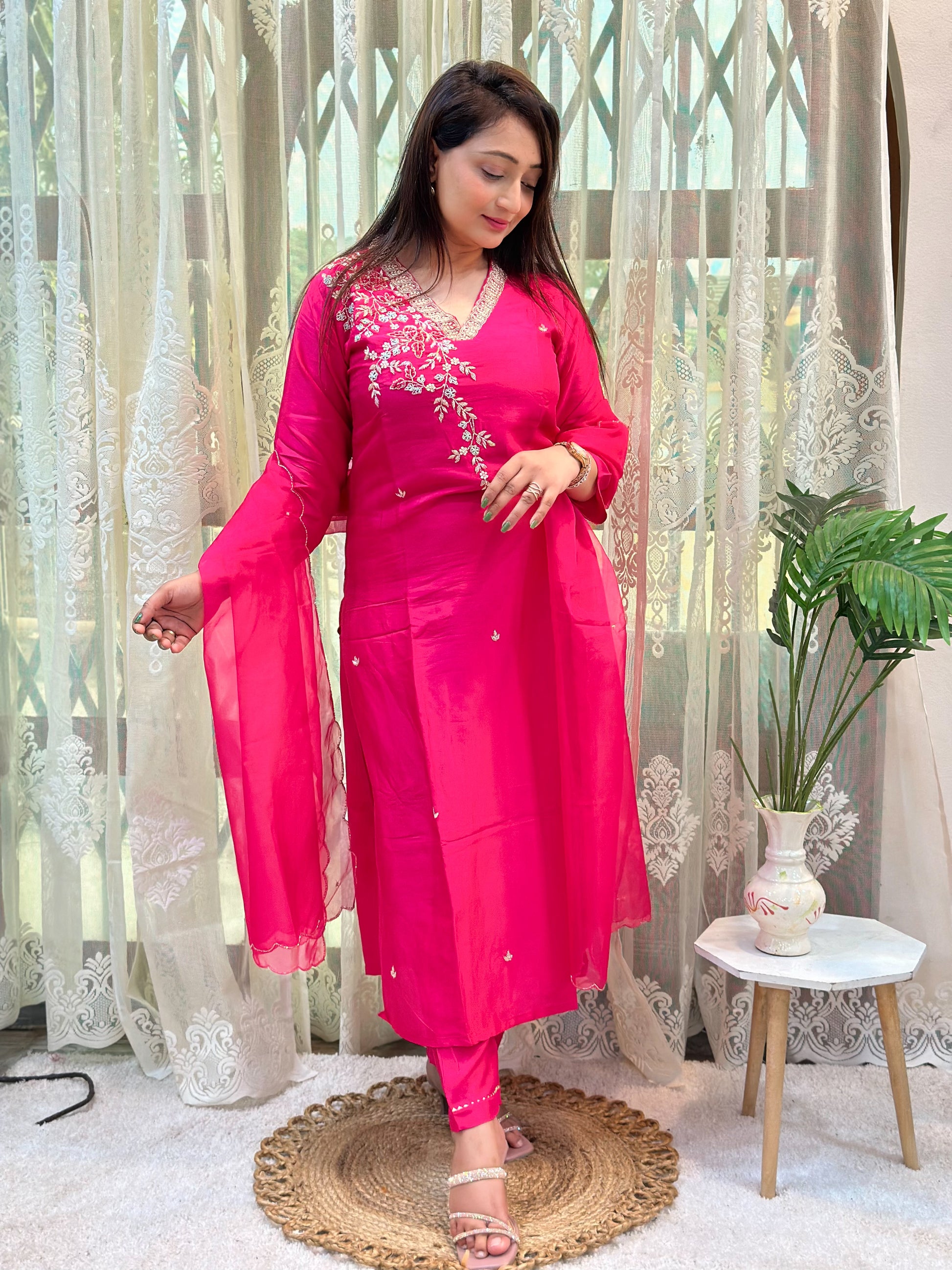 Elevate your ethnic wardrobe with this stunning pink kurta set, featuring intricate heavy embroidery on one side. Crafted from high-quality fabric, this set combines elegance and comfort, making it perfect for festive occasions and special events.